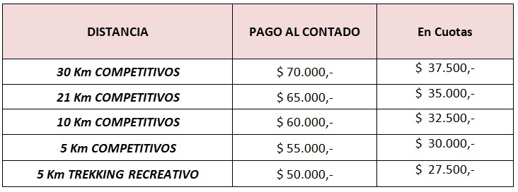 - Se puede abonar al contado o en dos cuotas, en caso de que el corredor decida pagar en cuota, el valor de la misma sera el correspondiente a la etapa en curso.
