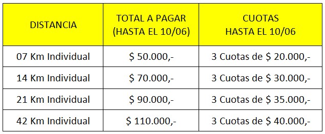 - FAMILIARES, CORREDORES CON C.U.D. Y/O PÚBLICO EN GENERAL $ 20.000,- EL ALMUERZO CON RECERVA HASTA EL 15/06 INCLUSIVE